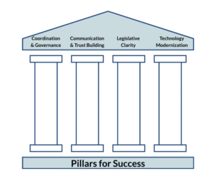 Establish the foundation for statewide data streamlining by aligning partners, documenting the case for change, and securing broad support across all levels of staff and agencies.