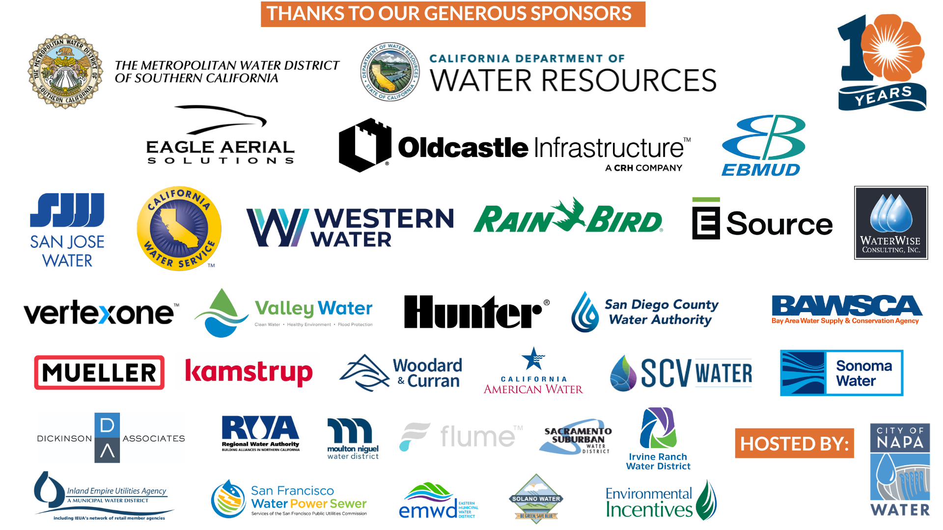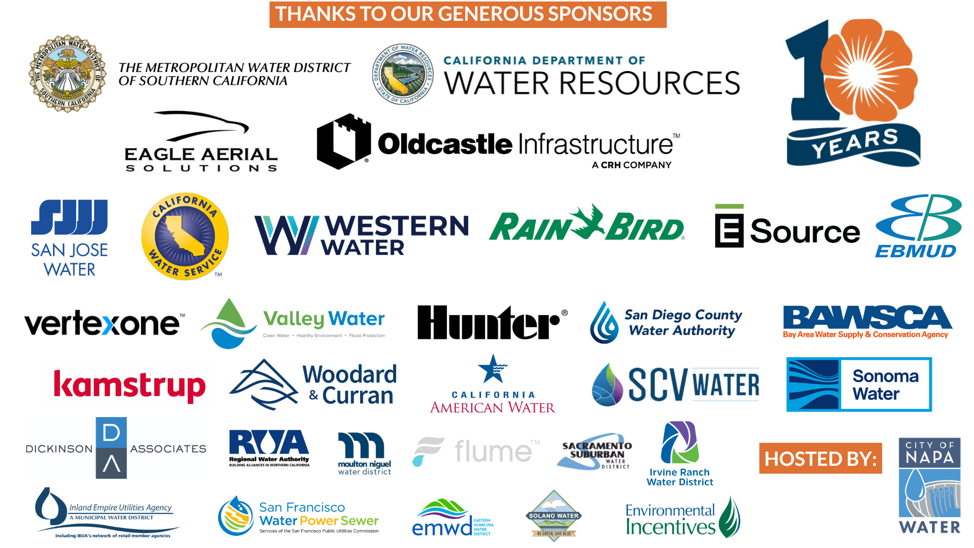 A range of sponsorship levels are available for both water agencies and business partners, including exhibitor opportunities, session sponsorships, and anniversary recognition.